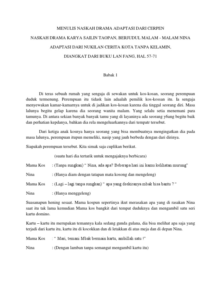Menulis Naskah Drama Adaptasi Dari Cerpen